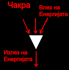 | Влегувањето на енергијата на секоја чакра е на широкиот крај, а излегувањето