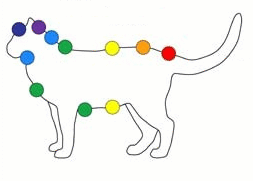 Горенаведената илустрација е иста и за мачка или куче, коњ и сите четириножни животни. Змиите и другите влекачи имаат чакри наредени по телото на ист начин. Некои членови имаат и пајаци. За чистење на познатиот пајак, само визуелизирајте го пајакот во сјајно Сонце и извлечете го Сонцето од неговото тело, истиснувајќи ги сите негативни енергии. Истото важи и за другите мали миленички.